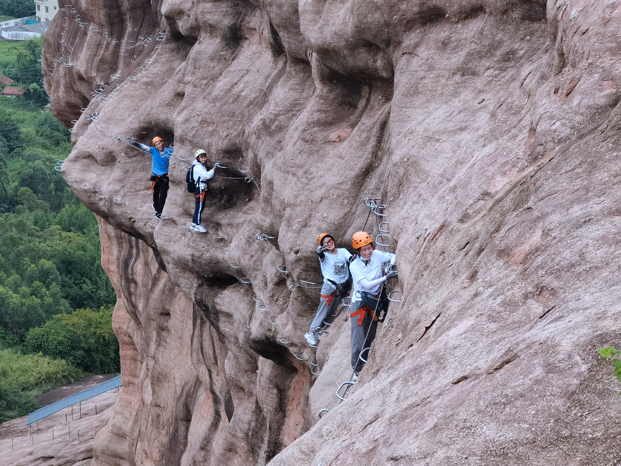 飛拉達(dá)攀巖,全程長達(dá)500米,垂直高度高達(dá)108米,全程攀巖需要2到3小時,除了要克服高度的恐懼,還需保持穩(wěn)定的心態(tài)和持久的耐力。