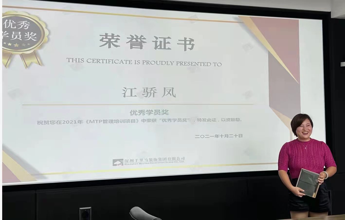 △江經(jīng)理在MTP培訓(xùn)班中被評為“優(yōu)秀學(xué)員”