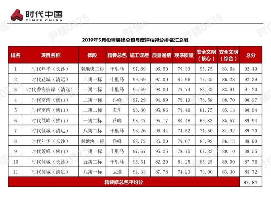 作為時代中國的精裝修戰略合作供應商,我司項目包攬時代中國2019年5月月度評估前三名!可喜可賀,只要我們重視、認真,取得好成績應是理所當然!恭喜獲得好成績的項目小伙伴,感謝獲得好成績的小伙伴,你們為公司取得了榮譽,公司全體同事以你們為傲!