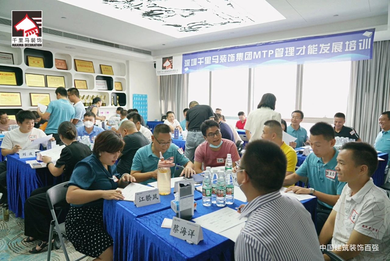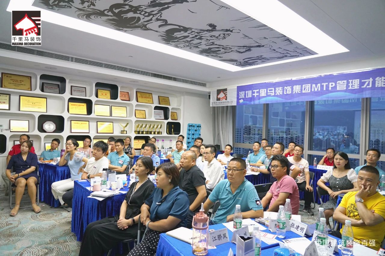 邁進(jìn)會(huì)議室,迎面而來的是擺放得整整齊齊的藍(lán)色課桌,抬頭看,清新怡人的藍(lán)白色相間的橫幅映入眼簾——“深圳千里馬裝飾集團(tuán)MTP管理才能發(fā)展培訓(xùn)”,原來是為了提升中層管理